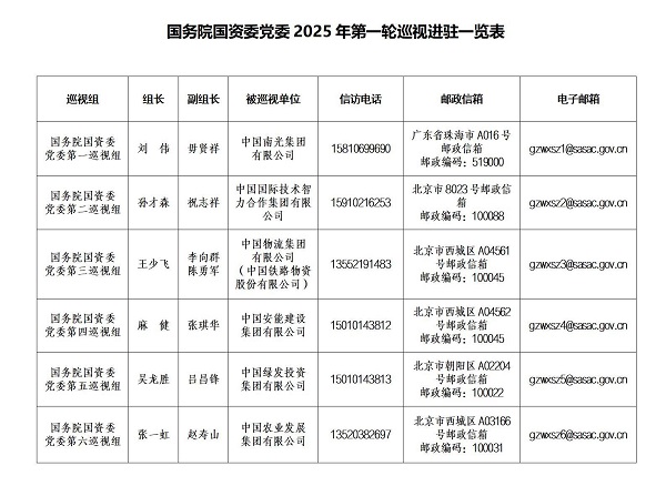 ƾ֤¹úÎñÔº¹ú×Êίµ³Î¯ºÍѲÊÓÊÂÇéÏòµ¼Ð¡×é°²ÅŰ²ÅÅ £¬£¬£¬£¬ £¬£¬×èÖ¹2025Äê5ÔÂ20ÈÕ £¬£¬£¬£¬ £¬£¬¹úÎñÔº¹ú×Êίµ³Î¯2025ÄêµÚÒ»ÂÖѲÊÓÍê³É½ø×¤ÊÂÇé¡£¡£¡£¡£¡£¡£¡£ ¡£¹úÎñÔº¹ú×Êίµ³Î¯6¸öѲÊÓ×齫¶ÔÖйú¹ú¼ÊÊÖÒÕÖÇÁ¦ºÏ×÷¼¯ÍÅÓÐÏÞ¹«Ë¾¡¢ÖйúũҵÉú³¤¼¯ÍÅÓÐÏÞ¹«Ë¾¡¢Öйú°²Äܽ¨É輯ÍÅÓÐÏÞ¹«Ë¾¡¢ÖйúÄϹ⼯ÍÅÓÐÏÞ¹«Ë¾¡¢ÖйúÎïÁ÷¼¯ÍÅÓÐÏÞ¹«Ë¾¡¢ÖйúÂÌ·¢Í¶×ʼ¯ÍÅÓÐÏÞ¹«Ë¾µÈ6¼ÒÆóÒµµ³Î¯¿ªÕ¹Í¨ÀýѲÊÓ £¬£¬£¬£¬ £¬£¬¶ÔÖйúÎïÁ÷¼¯ÍÅÓÐÏÞ¹«Ë¾ËùÊôÖйúÌú·Îï×ʹɷÝÓÐÏÞ¹«Ë¾µ³Î¯¿ªÕ¹ÌἶѲÊÓ¡£¡£¡£¡£¡£¡£¡£ ¡£