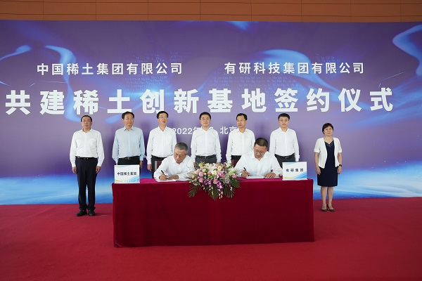 7月19日,,,,,,中国稀土集团与有研集团在京签署《共建稀土立异基地合作协议》,,,,,,深化稀土产研资源专业化整合,,,,,,配合打造天下一流稀土科技立异平台。。。。。国务院国资委党委委员、副主任翁杰明出席并见证合作签约。。。。。